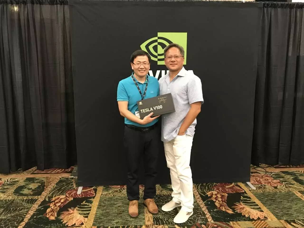 Nvidia CEO黄仁勋“教主”和中科院王亮合影。