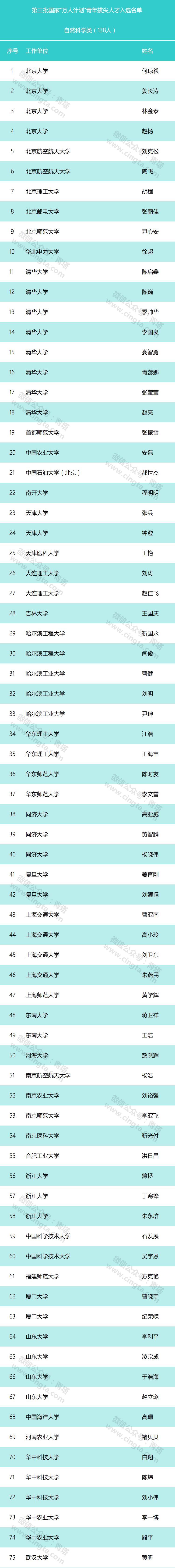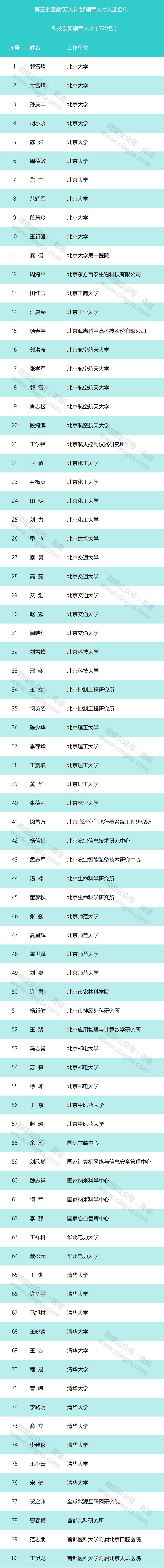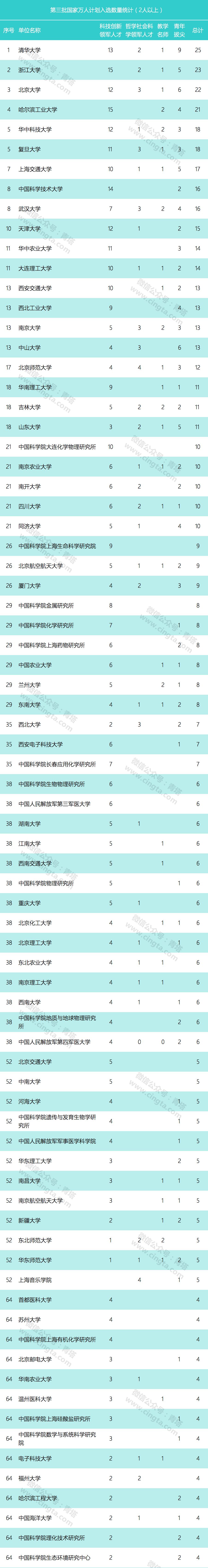 第三批国家万人计划入选者的工作单位统计和具体名单如下(统计结果不含科技创业领军人才;各高校附属医院、研究生院纳入高校进行统计;仅统计入选人数在2人以上的单位):