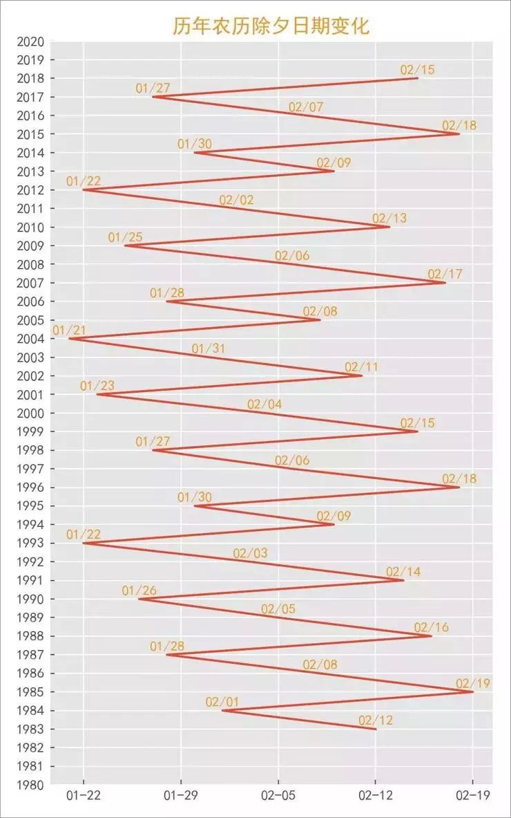 每年除夕的日期都在变化,那你是否好奇过「某两年的除夕是在同一天」这个问题?来看看: