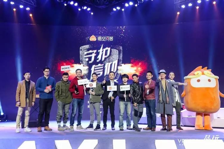 最后,「史上首个需要获奖人搀扶的颁奖吉祥物」、悟空问答吉祥物悟空公仔给首届数码粉丝辩论赛的获胜者谷粉刘超颁发了奖杯。