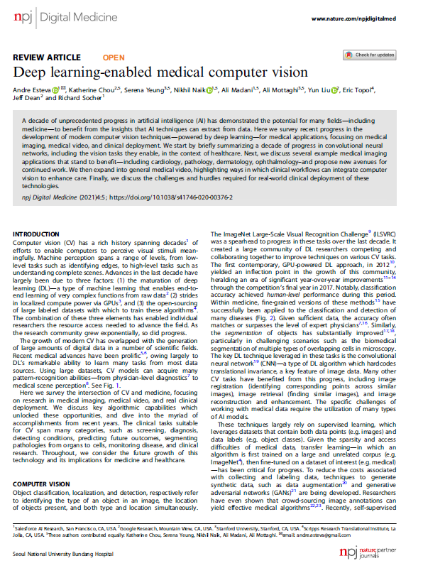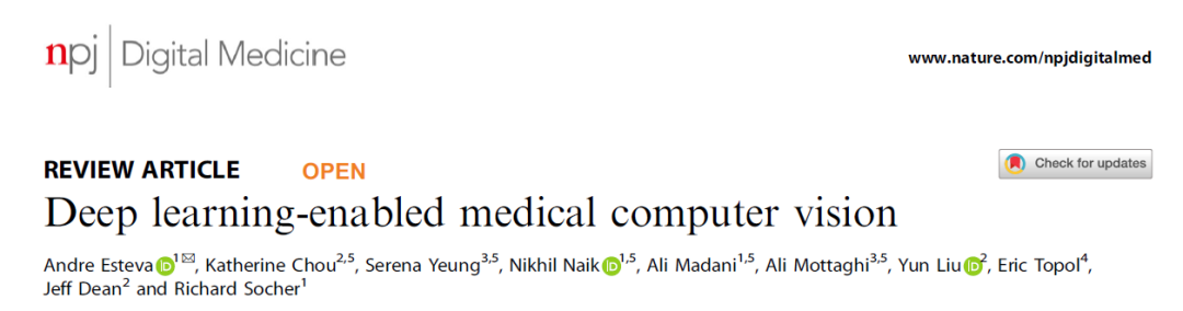 最新的一期Nature子刊《npj Digital Medicine》来Salesforce、Google、斯坦福的Jeff Dean人撰写关于深度学习在医疗视觉的应用,值得关注!