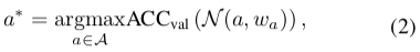 公式 (6) 与公式 (1) 、 (2) 的最大区别是其权重是预先初始化的。评估仅需要推理。没有微调或者再训练。因此搜索非常有效。