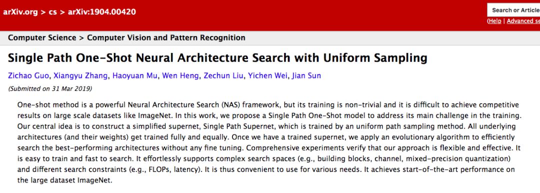 今天,旷视科技首席科学家孙剑团队发布论文Single Path One-Shot Neural Architecture Search with Uniform Sampling,首次披露AutoML中的重要子领域神经结构搜索的最新成果——单路径One-Shot模型。