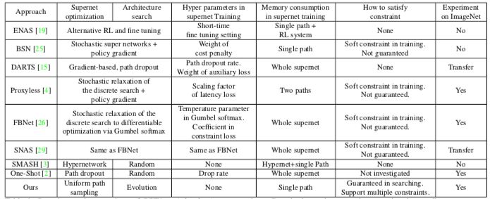 对模型结构进行的约束可以精确地满足。并且一旦训练好一个超网络,可在同一超网络内基于不同约束(比如 100ms 和 200ms 延迟)重复搜索。这些特性是先前方法所缺失的,将使 One-Shot NAS 方法对实际任务更具吸引力。