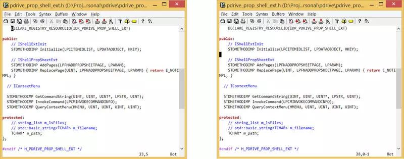 第一张图像的 scrolloff = 0,第二张图像的 scrolloff = 5。