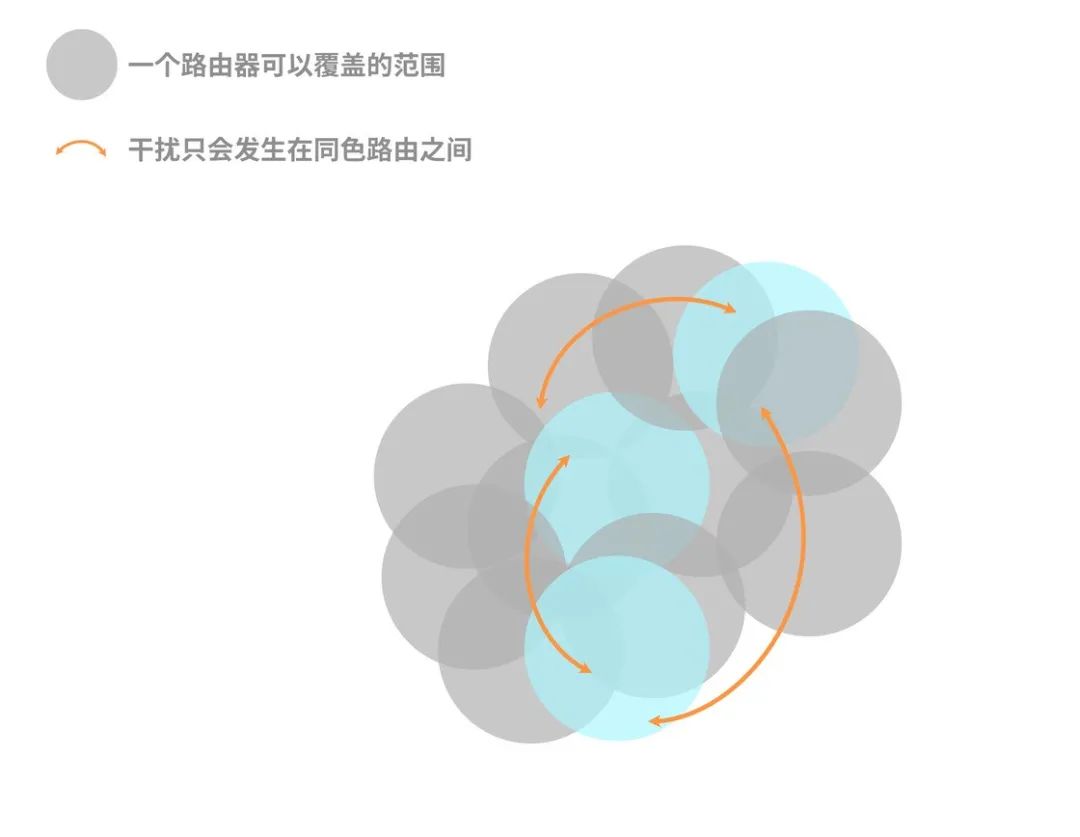 使用同一个频段无线路由器/接入点会互相干扰,导致传输性能下降。这也是为什么频宽总体更窄的 2.4G Wi-Fi 在有更多其他 2.4G Wi-Fi 的环境下性能表现会更差的原因。本来更加「宽广」的 5G Wi-Fi 是无需考虑干扰的问题的,但是随着 160MHz 宽频段的使用以及越来越多的 5G 无线路由器/接入点,干扰自然会越来越多。