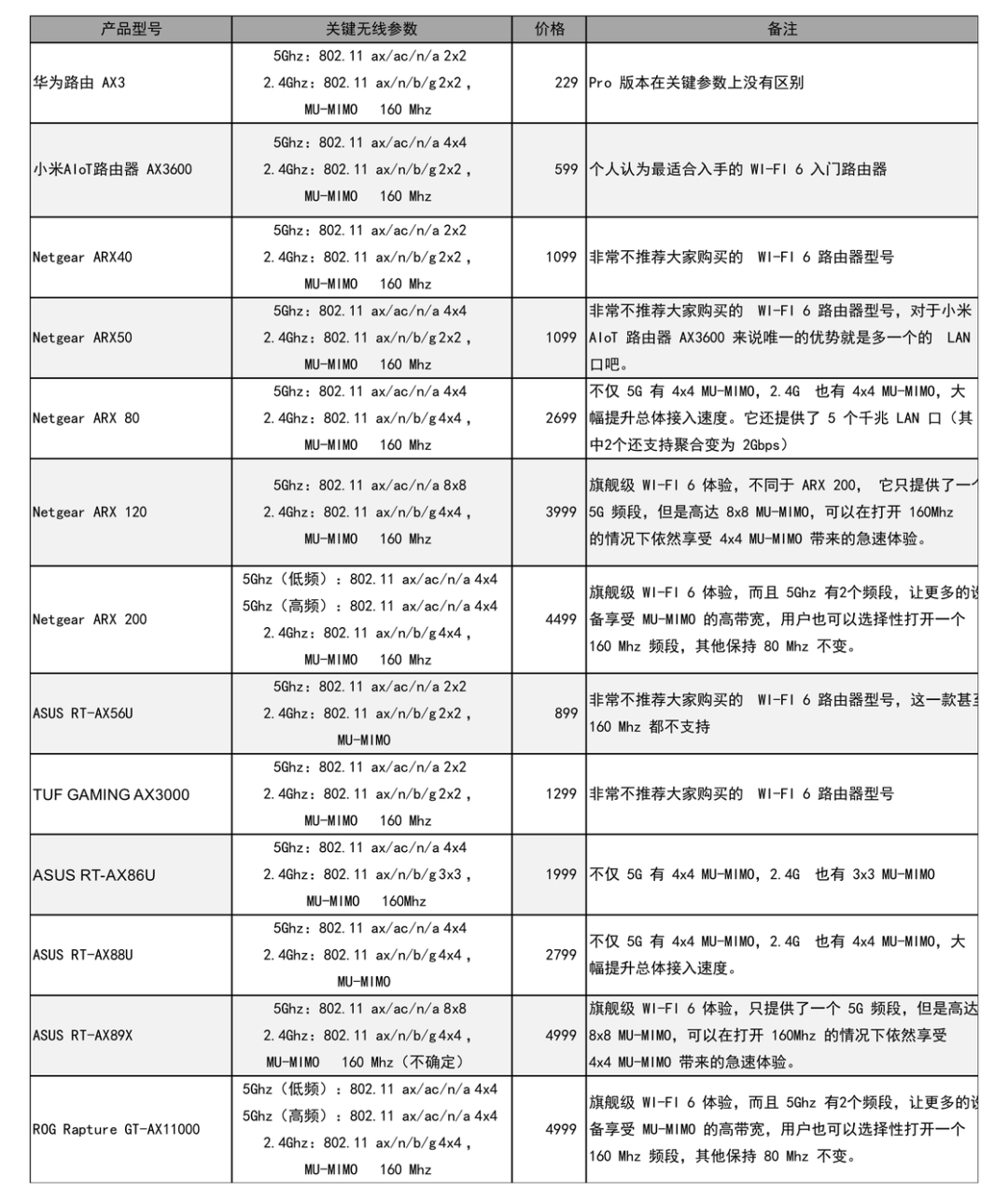 目前支持 Wi-Fi 6 的设备和相关如下图(下图仅仅只是举例):