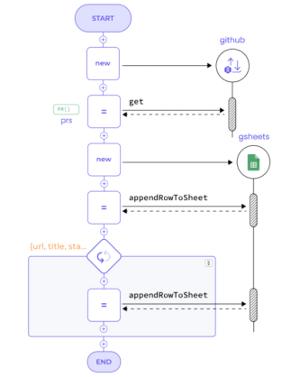 import ballerina/http;import ballerinax/googleapis.sheets;configurable string githubPAT = ?;configurable string repository = "ballerina-platform/ballerina-lang";configurable string sheetsAccessToken = ?;configurable string spreadSheetId = ?;configurable string sheetName = "Sheet1";type PR record {string url;string title;string state;string created_at;string updated_at;};