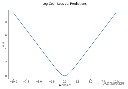 Log-cosh Loss(Y轴)与预测值(X轴)关系图。真值= 0