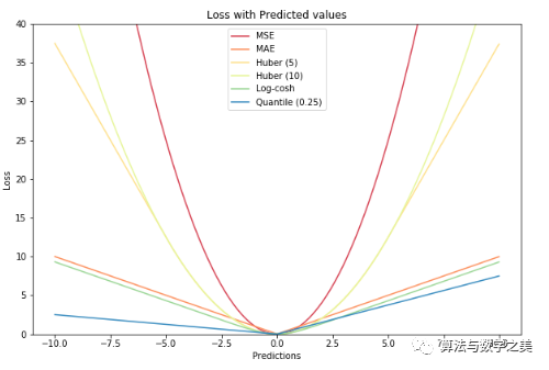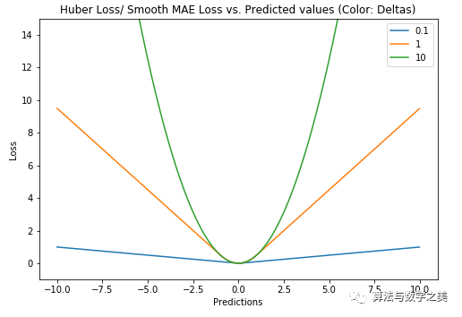 在这种情况下,Huber Loss可能会非常有用,因为它会使最小值附近弯曲,从而降低梯度。另外它比MSE对异常值更鲁棒。因此,它结合了MSE和MAE的优良特性。但是,Huber Loss的问题是我们可能需要迭代地训练超参数delta。