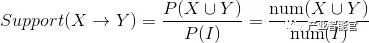 X → Y 的支持度表示项集 {X,Y} 在总项集中出现的概率