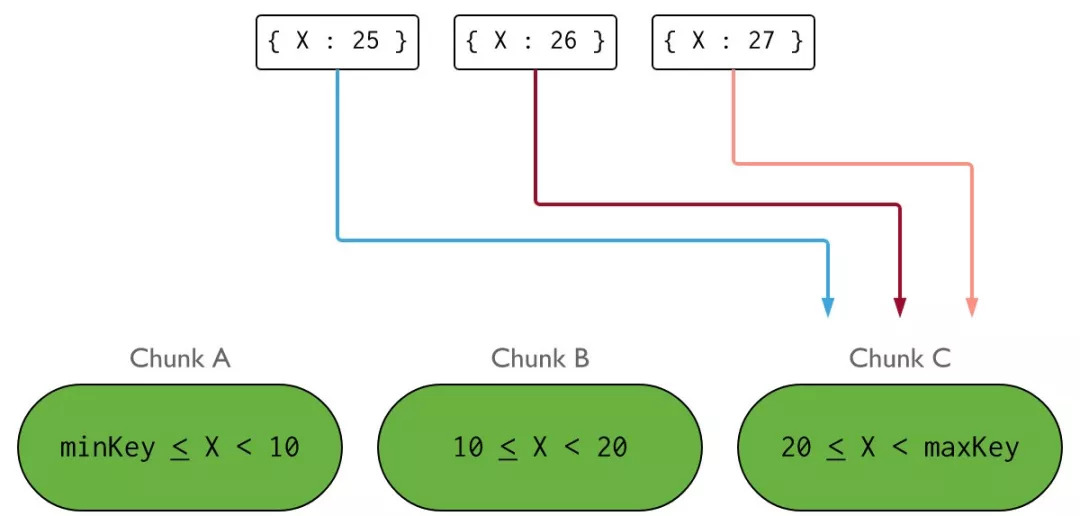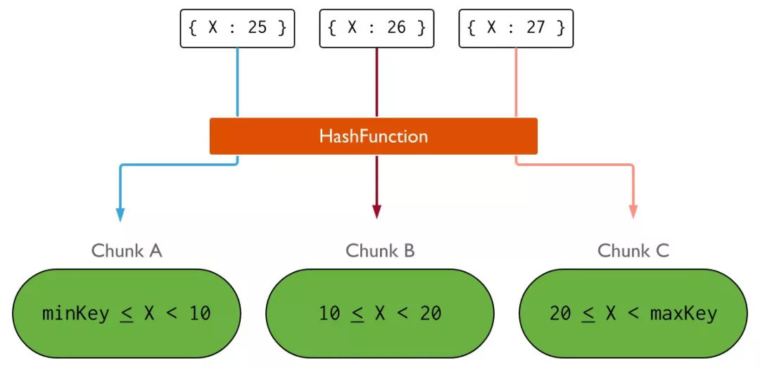 MongoDB partitions data in the collection using ranges of shard key values. Each range defines a non-overlapping range of shard key values and is associated with a chunk.