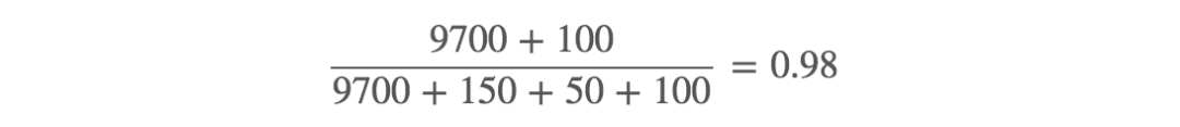 而假如将所有的样本都归为预测为负样本,准确率会进一步上升,但是这样的模型显然是不好的,实际上,模型已经对这个不平衡的样本过拟合了。