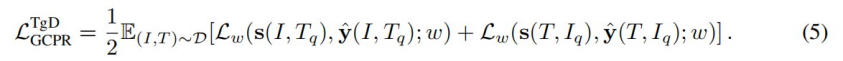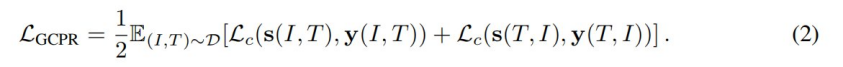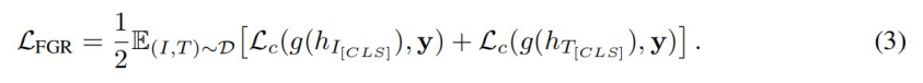研究者将 h_I_[CLS] 和 h_T_[CLS]作为两个交叉编码器的输出表示。给定一个图像表示 h_I_[CLS]和一个文本表示 h_T_[CLS],研究者将它们输入到一个全连接层 g(·)以得到各自的预测概率。令 y 表示为二元分类的 ground-truth 标签,研究者对细粒度排序损失进行如下的计算。