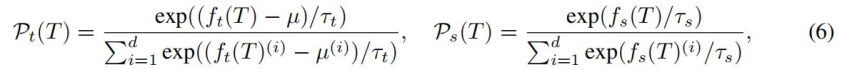 为了进一步提高模型性能,研究者对输入采用掩码策略。在具体实现中,将完整的输入提供给教师模型,将经过遮盖的输入提供给学生。依靠动量机制,目标是让学生的特征更接近教师的特征。形式上,教师和学生模型的预测分布分别定义如下: