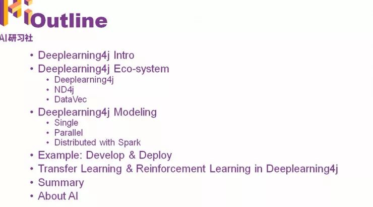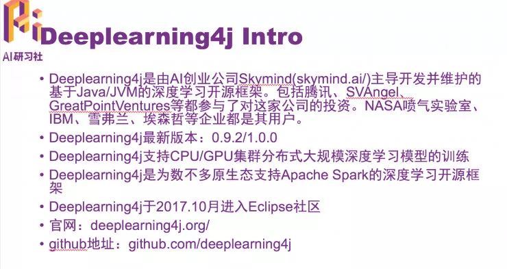 第一部分内容具体为DL4j的开源库背景,目前的项目进展情况和背后的支撑团队。