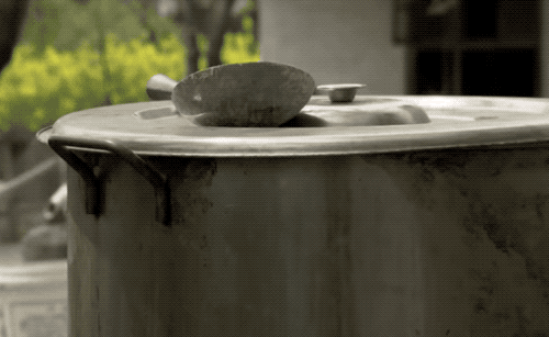 骨头上还有一些肉屑和油脂的残留,大妈还得下锅煮一煮……这锅骨头汤煮上个个几小时,就算彻底清洁了,之后再把这一块块的骨头放在太阳下晒晒干。