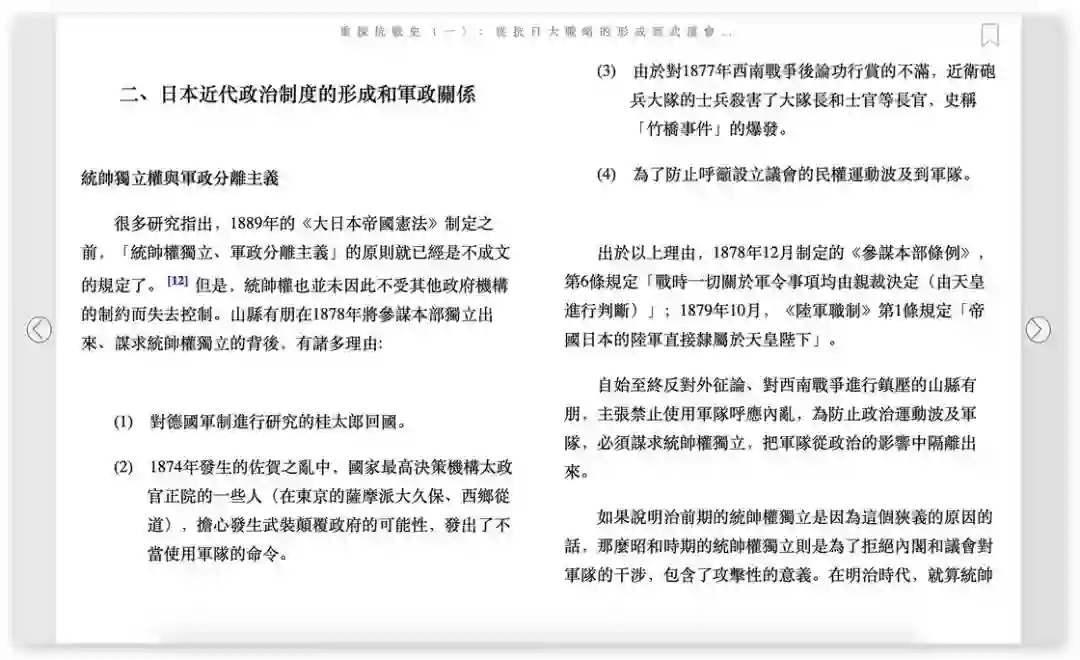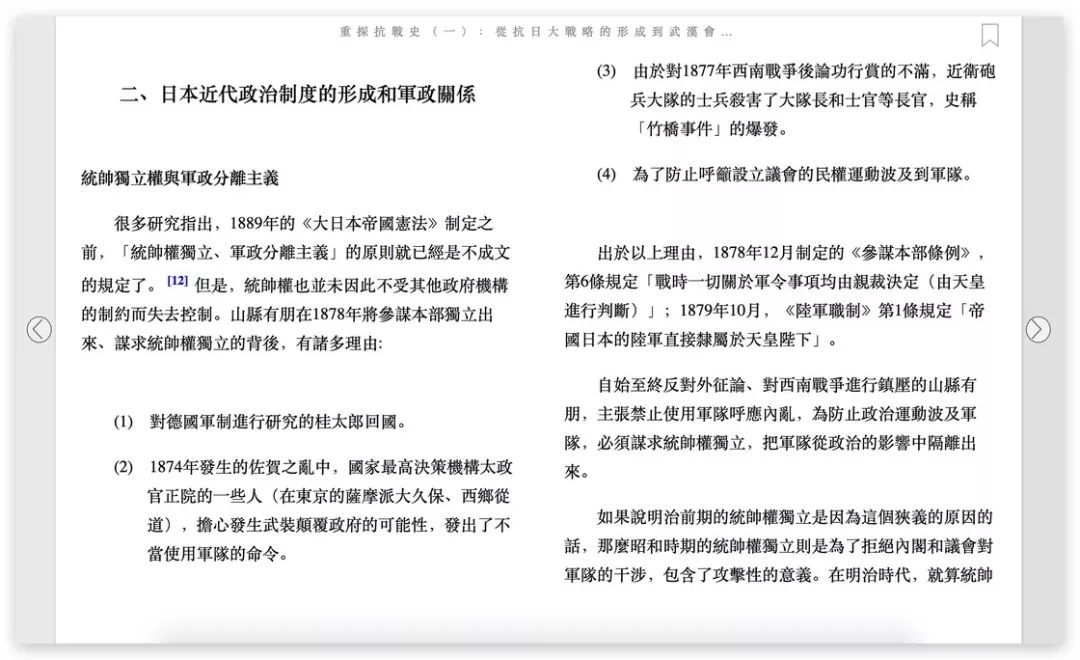读墨上繁体中文的排版普遍比 Kindle 里简体中文的排版要简洁和美观。以在网页上阅读读墨电子书为例,开始阅读后会隐藏全部的工具栏,在你面前就只有分为两列的一页文字和两个前进和后退按钮。