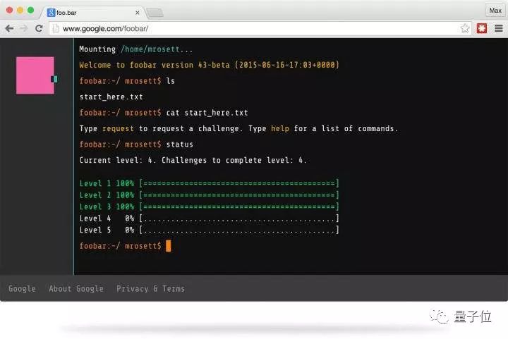 点击“挑战”后,页面跳转到一个叫“foo.bar”的页面,还会出现一道限时挑战题。连续攻破六道题后,foo.bar邀请这位挑战者提交个人信息。后来,就有招聘人员来要简历了。
