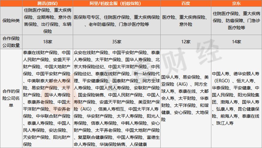 (一) BATJ中,蚂蚁保险的合作保险公司最多