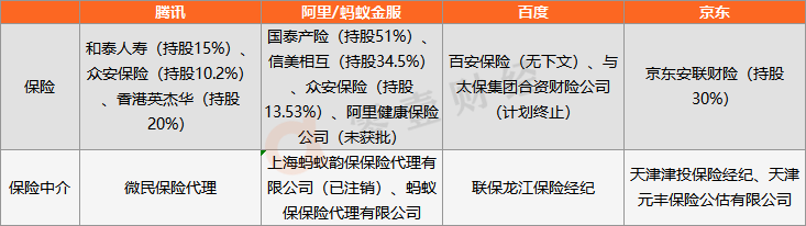 表2 BATJ互联网保险牌照