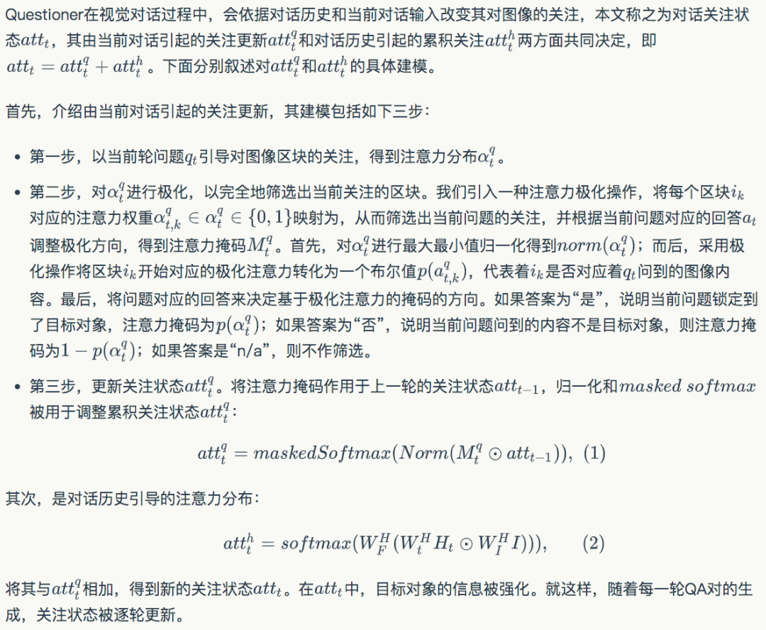 目标导向的视觉对话是“视觉-语言”交叉领域中一个较新的任务,它要求机器能通过多轮对话完成视觉相关的特定目标。该任务兼具研究意义与应用价值。日前,北京邮电大学王小捷教授团队与美团AI平台NLP中心团队合作,在目标导向的视觉对话任务上的研究论文《Answer-Driven Visual State Estimator for Goal-Oriented Visual Dialogue-commentCZ》被国际多媒体领域顶级会议ACM MM2020录用。该论文分享了在目标导向视觉对话中的最新进展,即提出了一种响应驱动的视觉状态估计器(Answer-Driven Visual State Estimator,ADVSE)用于融合视觉对话中的对话历史信息和图片信息,其中的聚焦注意力机制(Answer-Driven Focusing Attention,ADFA)能有效强化响应信息,条件视觉信息融合机制(Conditional Visual Information Fusion,CVIF)用于自适应选择全局和差异信息。该估计器不仅可以用于生成问题,还可以用于回答问题。在视觉对话的国际公开数据集GuessWhat?!上的实验结果表明,该模型在问题生成和回答上都取得了当前的领先水平。