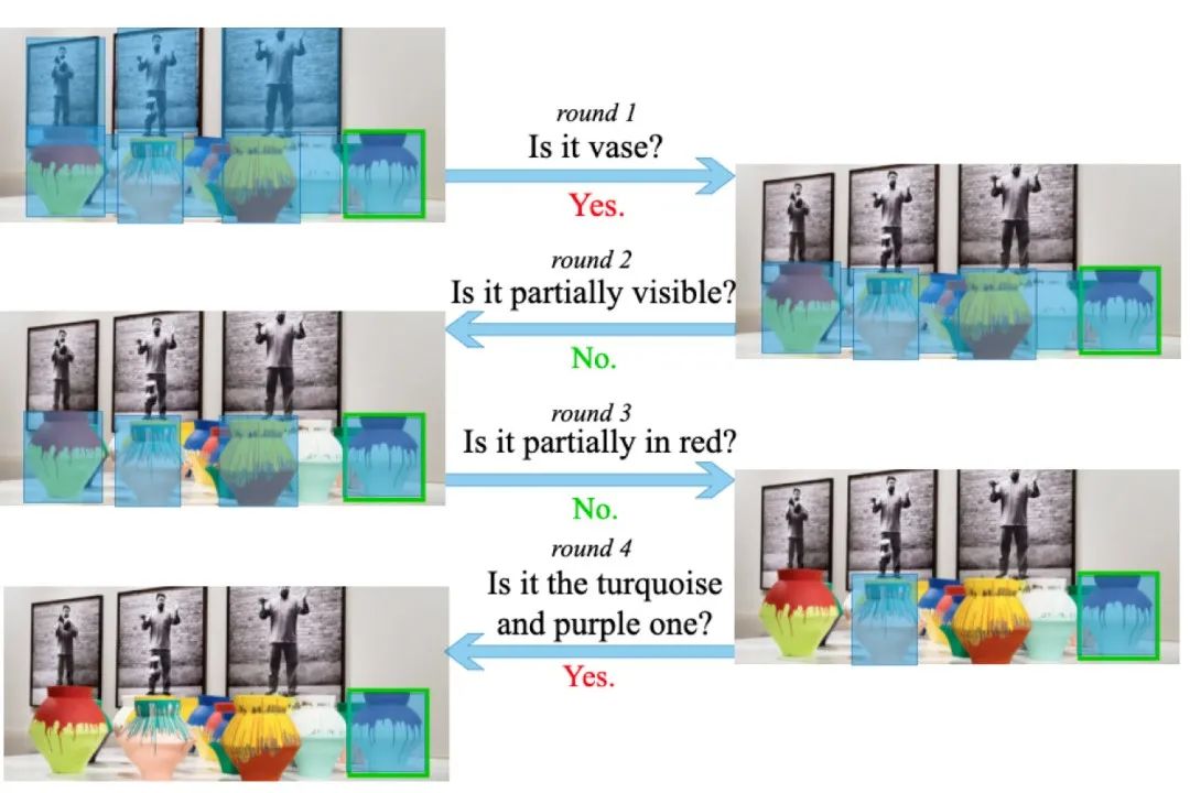 [1] FlorianStrub,HarmdeVries,JérémieMary,BilalPiot,AaronC.Courville,and Olivier Pietquin. 2017. End-to-end optimization of goal-driven and visually grounded dialogue systems. In Joint Conference on Artificial Intelligence.[2] Pushkar Shukla, Carlos Elmadjian, Richika Sharan, Vivek Kulkarni, Matthew Turk, and William Yang Wang. 2019. What Should I Ask? Using Conversationally Informative Rewards for Goal-oriented Visual Dialog.. In Proceedings of the 57th Annual Meeting of the Association for Computational Linguistics. Association for ComputationalLinguistics,Florence,Italy,6442–6451. https://doi.org/10.18653/v1/P19-1646[3] JunjieZhang,QiWu,ChunhuaShen, JianZhang, JianfengLu, andAntonvanden Hengel. 2018. Goal-Oriented Visual Question Generation via Intermediate Re- wards. In Proceedings of the European Conference on Computer Vision.[4] Ehsan Abbasnejad, Qi Wu, Iman Abbasnejad, Javen Shi, and Anton van den Hengel. 2018. An Active Information Seeking Model for Goal-oriented Vision- and-Language Tasks. CoRR abs/1812.06398 (2018). arXiv:1812.06398 http://arxiv.org/abs/1812.06398.[5] EhsanAbbasnejad, QiWu,JavenShi, andAntonvandenHengel. 2018. What’sto Know? Uncertainty as a Guide to Asking Goal-Oriented Questions. In Proceedings of the IEEE Conference on Computer Vision and Pattern Recognition. 4150–4159.[6] Chaorui Deng, Qi Wu, Qingyao Wu, Fuyuan Hu, Fan Lyu, and Mingkui Tan. 2018. Visual Grounding via Accumulated Attention. In Proceedings of the IEEE Conference on Computer Vision and Pattern Recognition. 7746–7755.[7] Tianhao Yang, Zheng-Jun Zha, and Hanwang Zhang. 2019. Making History Matter: History-Advantage Sequence Training for Visual Dialog. In Proceedings of the IEEE International Conference on Computer Vision. 2561–2569.