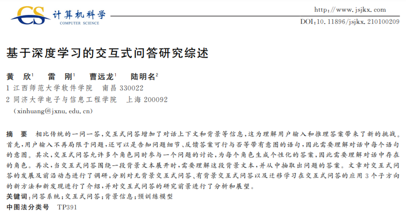 相比传统的一问一答,交互式问答增加了对话上下文和背景等信息,这为理解用户输入和推理答案带来了新的挑战。首先,用户输入不再局限于问题,还可以是告知问题细节、反馈答案可行与否等带有意图的语句,因此需要理解对话中每个语句的意图。其次,交互式问答允许多个角色同时参与一个问题的讨论,为每个角色生成个性化的答案,因此需要理解对话中存在的角色。再次,当交互式问答围绕一段背景文本展开时,需要理解这段背景文本,并从中抽取出问题的答案。文章对交互式问答的发展及前沿动态进行了调研,分别对无背景交互式问答、有背景交互式问答以及迁移学习在交互式问答的应用3个子方向的新方法和新发现进行了介绍,并对交互式问答的研究前景进行了分析和展望。