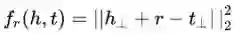 使用一个映射矩阵,把不同的实体向量映射到相同的向量空间中,,其中