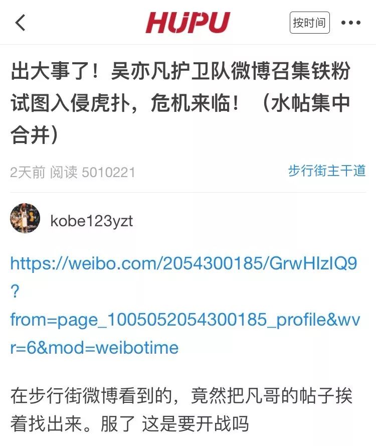 十分钟后,虎扑步行街的官微转发吴亦凡的微博,正面刚。