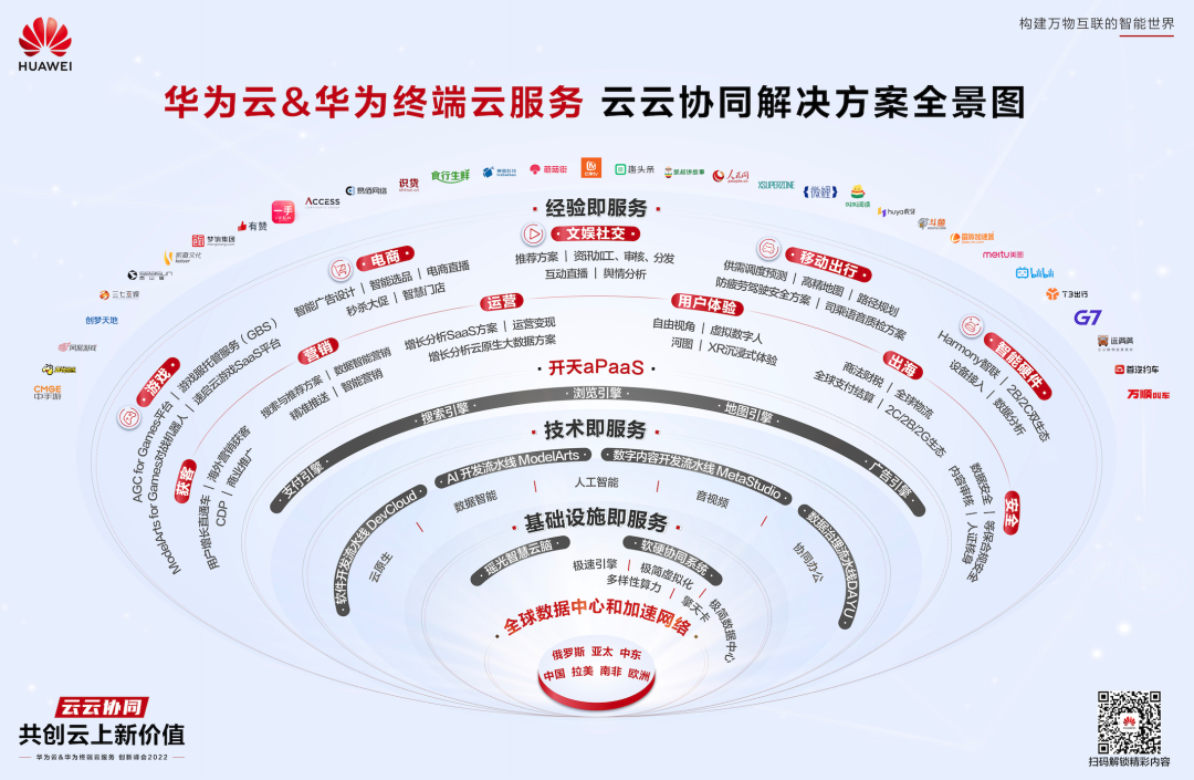今年,华为云发布了“云云协同”策略,通过华为云和终端云深度协同,为开发者和合作伙伴提供统一的服务与体验,包括统一账号、支付、音频、视频等开放能力,以及统一开发平台、统一应用分发及运营服务。据悉,基于华为云打造的华为终端云服务 HMS 生态,已成为全球第三大移动应用生态,服务 170 多个国家和地区。