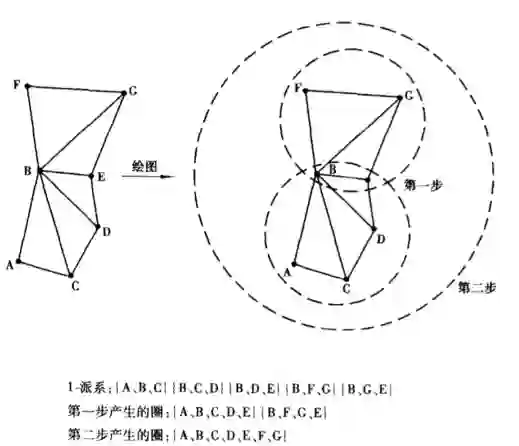 派系是环概念的延伸,n-派系中的n指的是派系成员之间联络的最长途径之长;我们最开始的例子(五个用户)给出的就是一个2-派系群体。