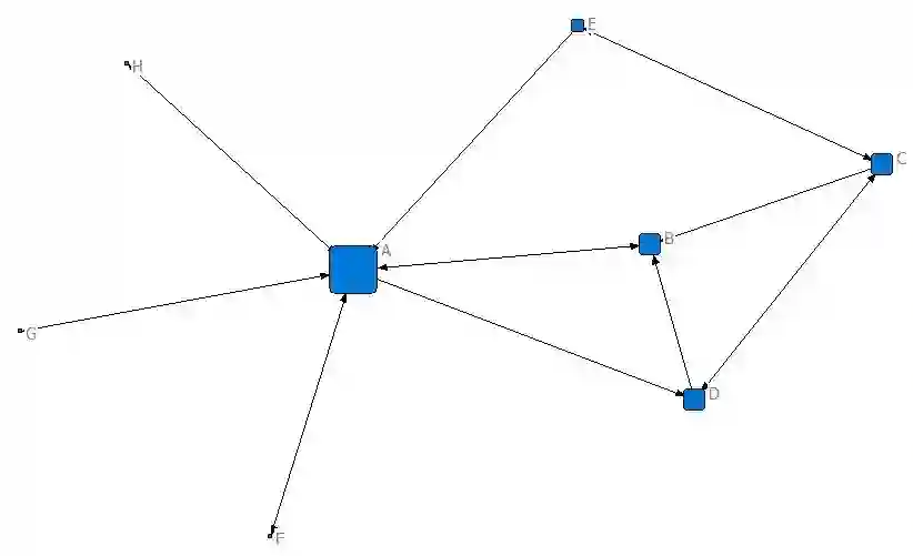 上图中反映的指向和指出每个用户的线条数不尽相同,而衡量这一指标,有助于理解整个社区内的“权力”流向。简单理解:即一个行动者获得越多的箭头指向数,那他在这个社区中的位置和威望越高。