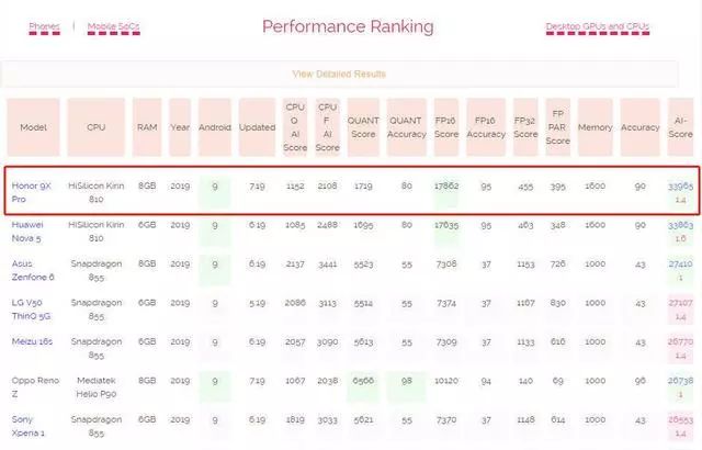 麒麟810芯片AI分数是3300多,名列第一。而骁龙855手机则是2700多。