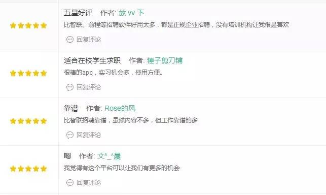从评价内容来看,大部分用户对实习僧持正面评价,认为实习僧比综合类的智联招聘、前程无忧更好,实习机会更多。同时,我们可以通过这些评论窥探到用户的诉求——正规企业,实习机会多,工作靠谱。实习僧确实做到了这些。