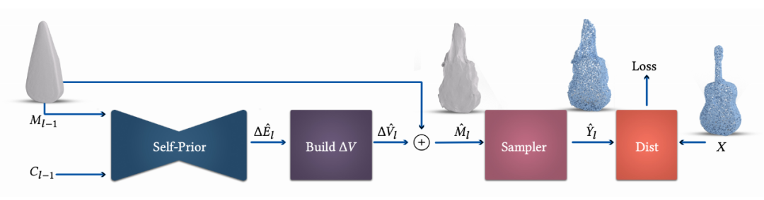 图 4:在 l 层上 Point2Mesh 框架概览。