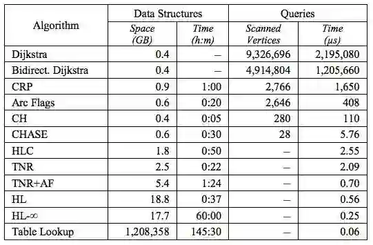 表 1:西欧的路线规划技术的表现 [BAS15]