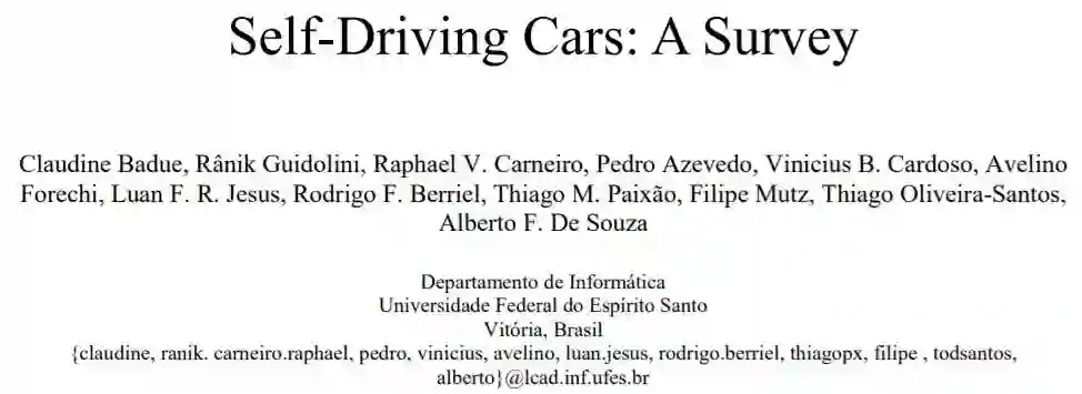 尽管大多数有关自动驾驶汽车的大学研究都来自美国、欧洲和亚洲,但巴西等国家也有一些相关研究。巴西的自动驾驶汽车研究平台相关案例包括米纳斯·吉拉斯联邦大学(UFMG)的汽车 CADU [LIM10] [SAB10] [LIM13] [DIA15a]、圣保罗大学的汽车 CARINA [FER14] [MAS14] [SHI16] [HAT17] 和圣埃斯皮里图联邦大学(UFES)的汽车 IARA [MUT16] [CAR17] [GUI16] [GUI17]。IARA 是巴西首辆在城市道路和公路上自动行驶了 74 公里的无人驾驶汽车。