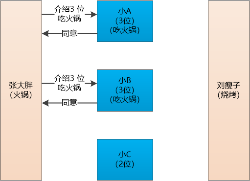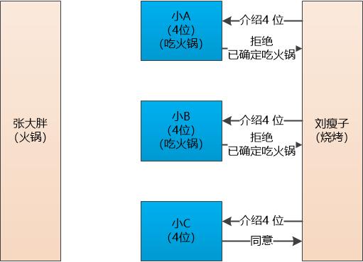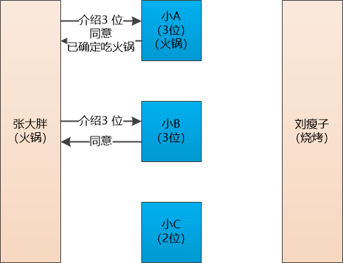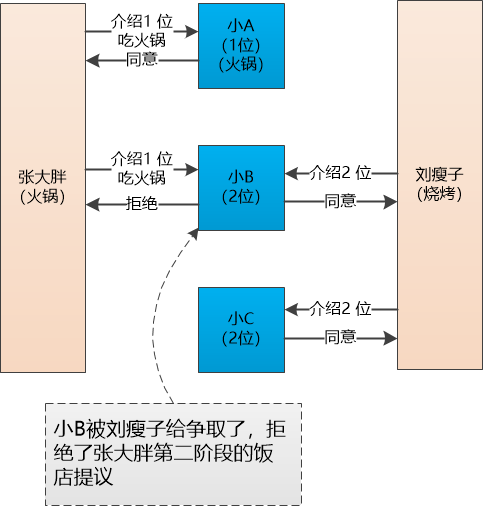 “在开始之前,我先说几个要求, 咱们的目的是一起去吃饭,所以张大胖你不能给小 A 说去吃火锅,给小 B 说去吃烧烤,又给小 C 说去吃料理。你这样来回捣乱我可要罚你工资了!”