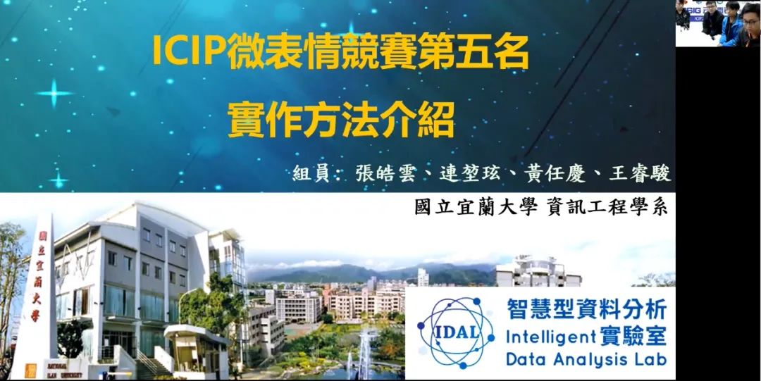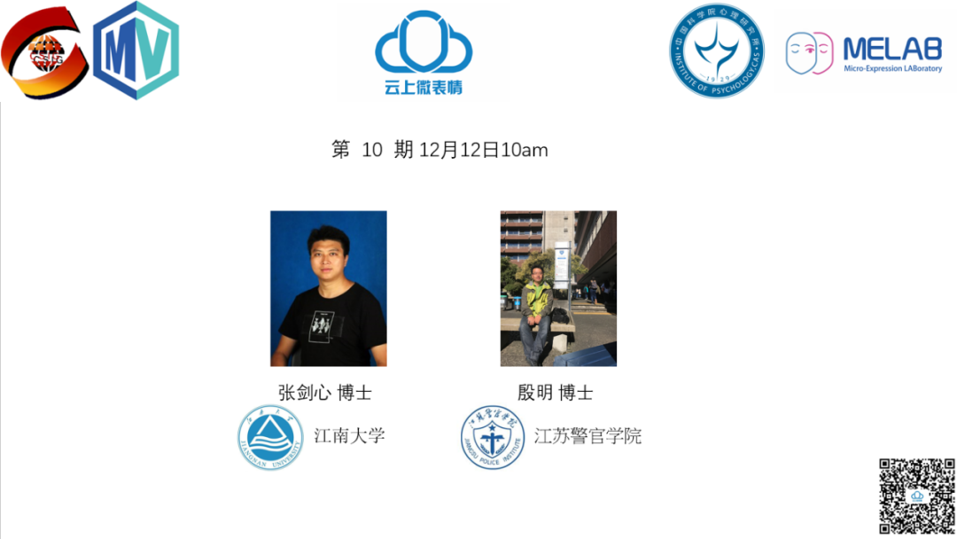 第九期云上微表情于2020年11月27日晚7点进行,由中国科学院心理研究所王甦菁老师团队的李婧婷博士主持。此次讲座的主题是ICIP2020微表情挑战赛,首先由主要组织方台湾国立交通大学郑文皇教授团队的谢洪霞博士研究生对大赛进行了简要介绍,之后邀请到了大赛的第一名和第五名团队:来自合肥工业大学的郑仕鑫所在的团队和来自台湾国立宜兰大学的张皓云所在的团队进行了方法介绍。本次报告得到了微表情研究领域的广泛关注,期间有五十多位听众参加了此次讲座。