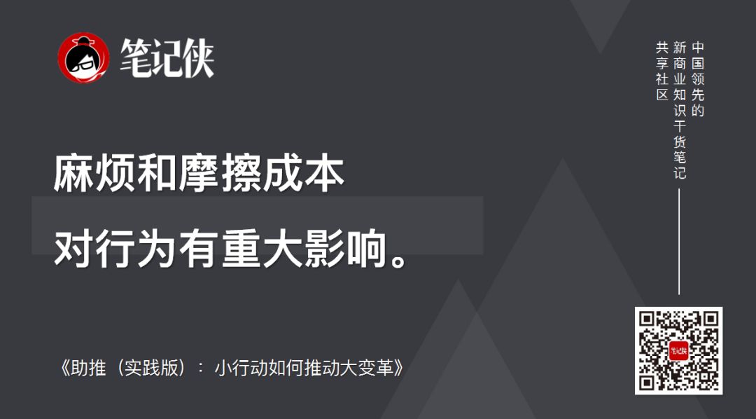 麻烦和摩擦成本对行为有重大影响。这个简单的道理给许多政策干预提供了解决方案。不仅如此,很多公司也在采用这个办法。