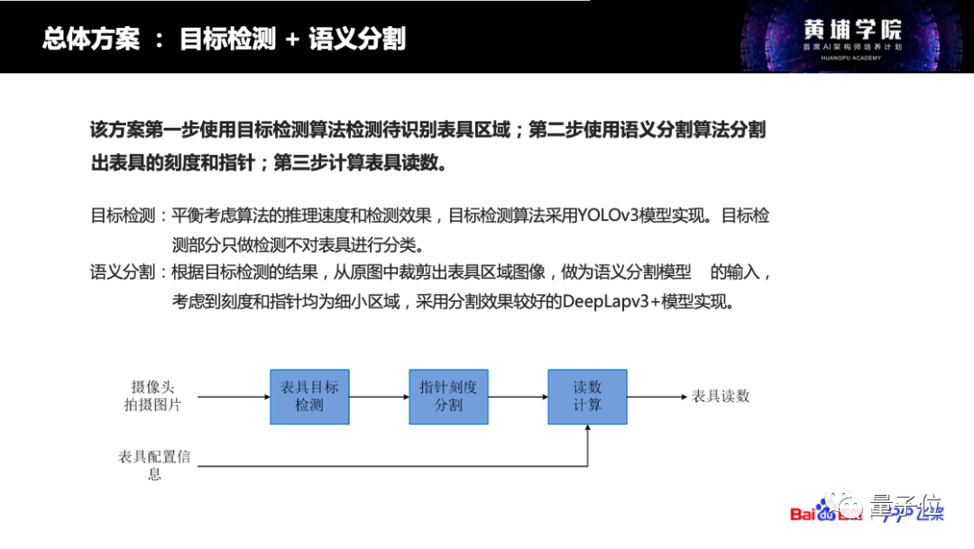所以我们没选择直接识别的方案,因为直接识别会遇到多尺度的问题。我们选用了更为复杂的方案:目标检测+语义分割,当我的读数难度变小了,精确度会得到更好的保证,这是最核心的。同时,因为模型复杂度的提升,我的推理时间变长了。不过没关系,因为在表计巡检的场景里,对时效要求并不高。所以很多时候,大家问这样的方案好不好那样的方案好不好,还是要首先去回答自己的问题,你的场景到底有什么样的限制条件。没有最好,只有最适合。