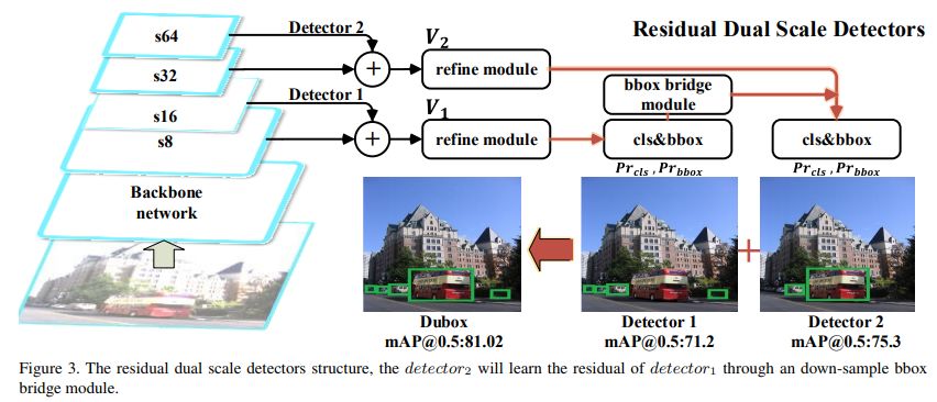 Dubox的另一大创新是不再多个分支上独立并行的使用多个检测器,而是将检测器减少到了两个: