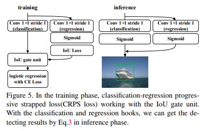 熟悉densebox的同学都知道,这种设计和densebox相似,densebox更像分割类算法,对物体的中心范围进行回归+分类,因为物体内的范围都是正样本,其其他范围为负样本,为了克服正负样本波动性所以在正样本周围加上了一圈ignore范围,从而防止梯度的波动。Dubox没有使用固定的ignore范围,而是在loss设计时候是有iou gate unit自动的学习ignore范围。