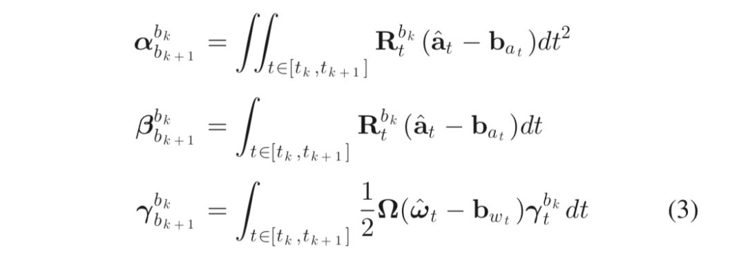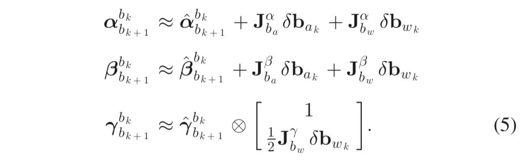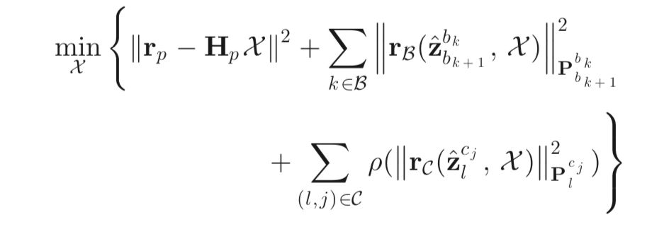其中,第一项是来自边缘化后的先验,第二项来自IMU观测残差,第三项来自视觉数据残差。