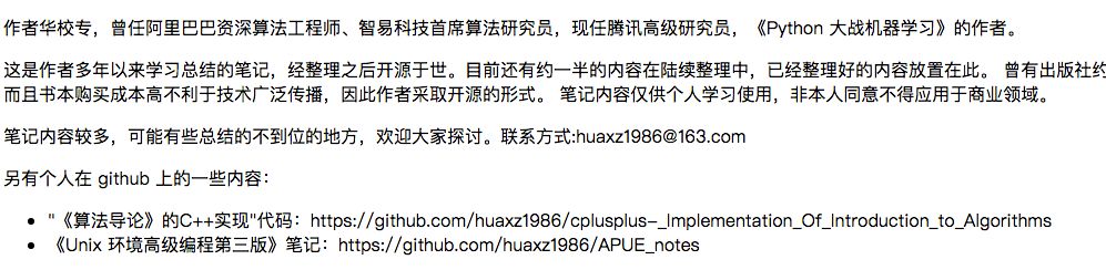 推荐一个开源项目:AI算法工程师手册,作者华校专,曾任阿里巴巴资深算法工程师、智易科技首席算法研究员,现任腾讯高级研究员,《Python 大战机器学习》的作者。