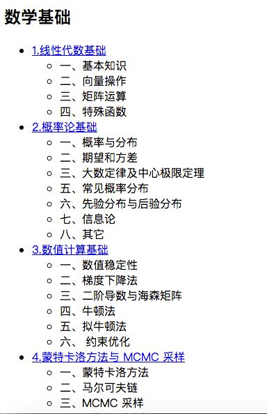 作者将自己多年的学习的笔记整理之后放在互联网上,还在整理中,感兴趣的同学可以看一下,内容涵盖数学基础、统计学习、深度学习、自然语言处理、CRF、lightgbm、scikit-learn、spark、numpy、scipy、matplotlib、pandas等。以下节选信息来在这本手册网站,点击阅读原文可以直达: