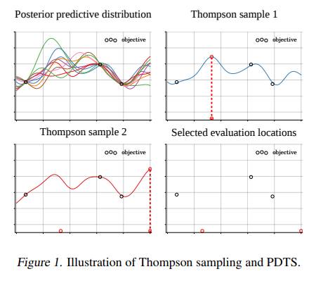 本文由剑桥大学和IBM联合发表。汤普森采样算法是贝叶斯优化领域的经典算法,可对搜索空间做高效探索,但当前算法无法实现大规模并行化。本文提出了分布式的汤普森采样算法,并在具有大规模搜索空间的化学实验中验证了该算法的有效性。