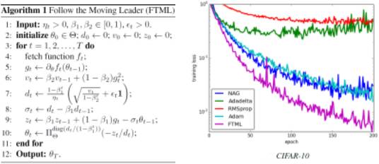 本文由香港科技大学发表。在深度学习中,参数以及数据分布都会随着迭代进行不断变化,这使得深度学习模型的训练一直是一个具有挑战性的问题。针对这一问题,本文提出了全新的FTML算法,具有更快收敛速度。与已有优化算法(如FTRL)不同的是,本文的FTML算法迭代中,越新样本具有越大权重,这使算法更能适应数据分布变化,有更快收敛速度。多个数据集上深度学习模型训练实验结果显示,FTML比其他已有算法收敛更快。