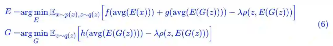 这也是为什么在 (6) 中我们甚至可以直接用 avg(E(x)) 做判别器,因为它不会被 ρ(z,E(G(z))) 的影响的。